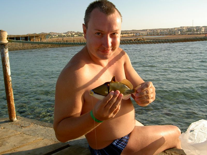 Если договориться с охраной, можно встать в отвес у пирса. Леска 0.2, груз 10-15 г, крючок №6-4. Лучшее время перед закатом. Насадки простые: макароны, сыр, колбаса, хлеб - морская рыбалка в Хургаде любит кухню. Руками колючих не хватать, много ядовитых.