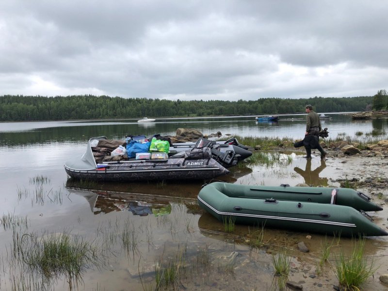 С Керети ближе, но к воде подъезда нет — помогают за деньги, стоянка авто есть. Две лодки под моторами и одна прицепом, у одной мотор накрылся — тащили две. Шли дальше Пежострова, назвали это «Унылое пароходство».