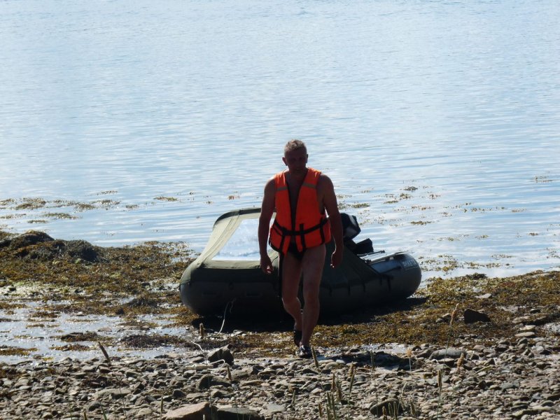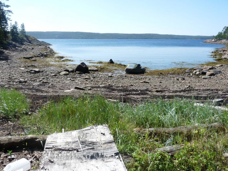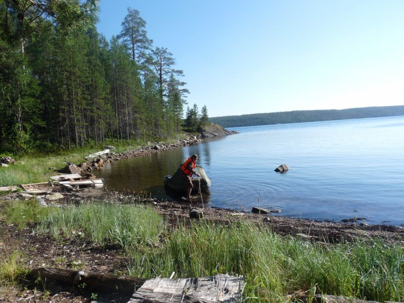 Пляж Пежо — красивый, но людно. Полюбили Боршовец: залив закрыт от ветра, изба как ориентир. При поломке мотора север-северо-восток снесёт к старту в Керети. Воду брали с материка напротив, эвакуация в 2 захода на лодке 3,2 м — без экстрима.