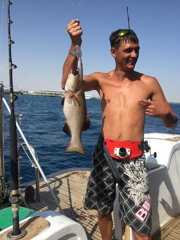 Отель в Хургаде, собрали компанию из шести. Как обычно, за нами приехали и отвезли в порт. С 9 до 11 троллингом взяли ваху, морского окуня, каранкса. Потом встали на донку - килограмм 30 голубого псевдобалиста, перекус, купание. На обратном пути одна поклёвка. Совет: морская рыбалка в Хургаде рабочая и доступная, просто избегайте откровенной рекламы, берите проверенных.