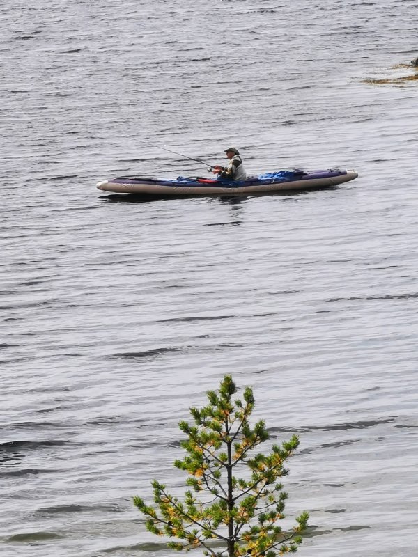 Приехали на три дня, ушли раньше по прогнозу. Пять тресок за выезд. Мотор на резервном баке глох, потом ожил. Проверок не было. Купались, ватрушка, ягоды на Сидорове.