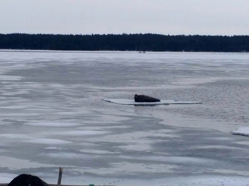 Вчера метель, сегодня +8. Меж Пулонгой и Чкаловским осталась перемычка — скоро разобьёт. Гуси, лебеди, журавли, утки, тюлени, зайцы. Морской заяц дрейфует на льдине.
