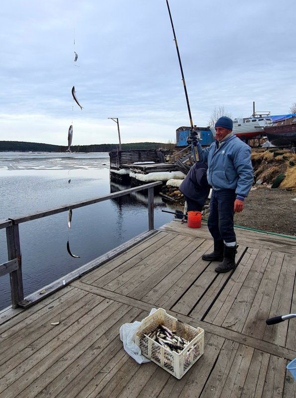 Поздравляю. Чупинцы берут селёдку с причала. Ждём, когда в море. Морская рыбалка на Белом море скоро.