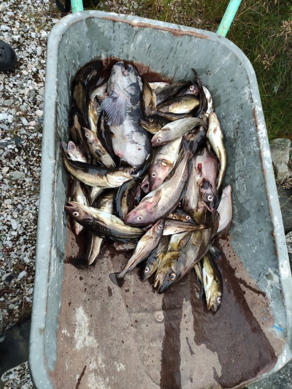 Завершили поход. В субботу хорошо половили: треска мерная и зубатка на 2300. Сплавлялись от Оленчика к насыпям, клевало с 11 до 16 м. Работал фореливый селикон «няшек» в виде рыбок и бусинок с подсадкой креветки. В сумме 4 морских сига, 3 комбалки, 4 зубатки и треска с Гаваной — около 60 кг чищенных тушек без голов и кишок. Отдохнули отлично.