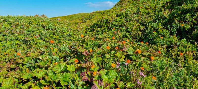 Всем привет, треска 9800, летняя. Печень — шикарная. Салат из морской капусты зашёл, морошка добавила настроения. Отличный день.