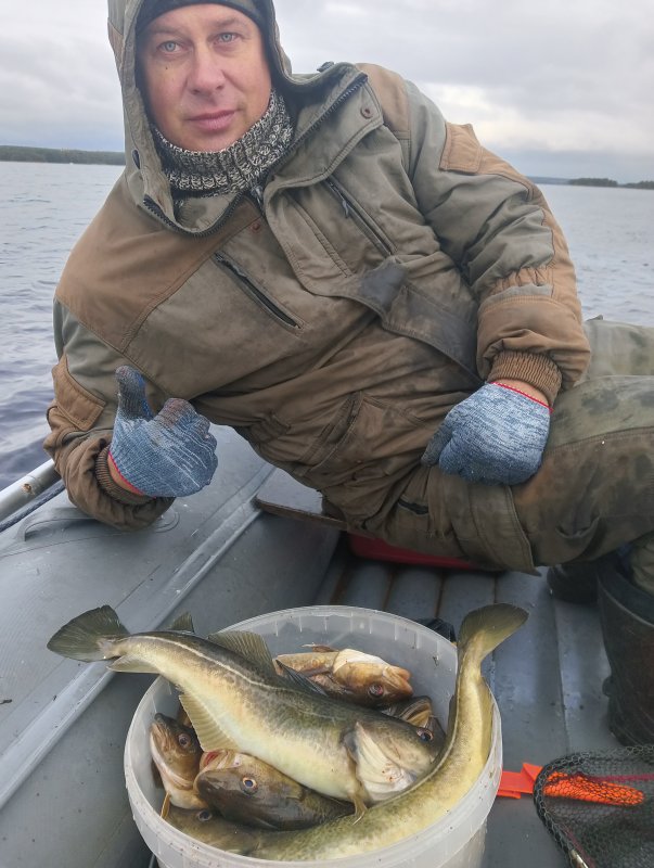 Сегодня с 11.00 до 15.00 наковыряли 22 кг трески. Мелочи мало, брала жадно. Погода около +2. Морская рыбалка в Карелии живёт, котёл доволен!