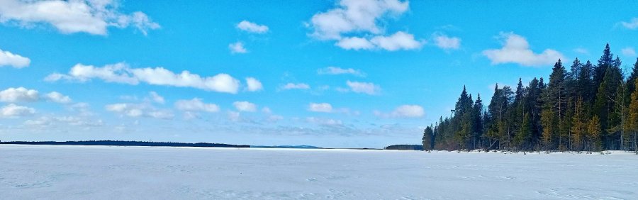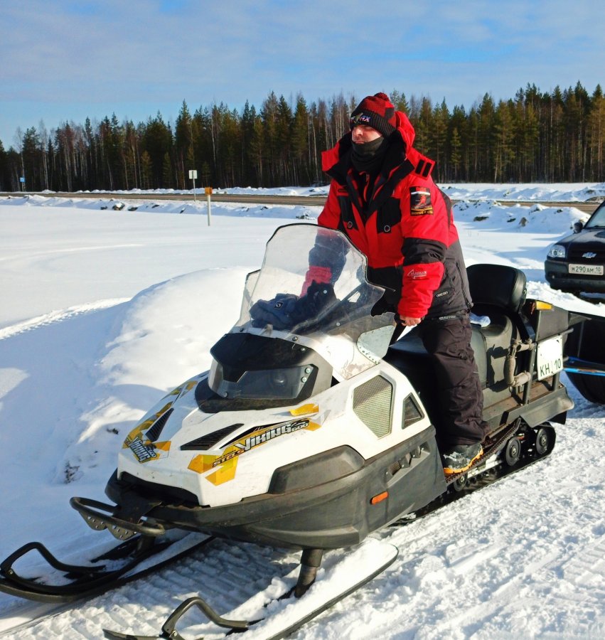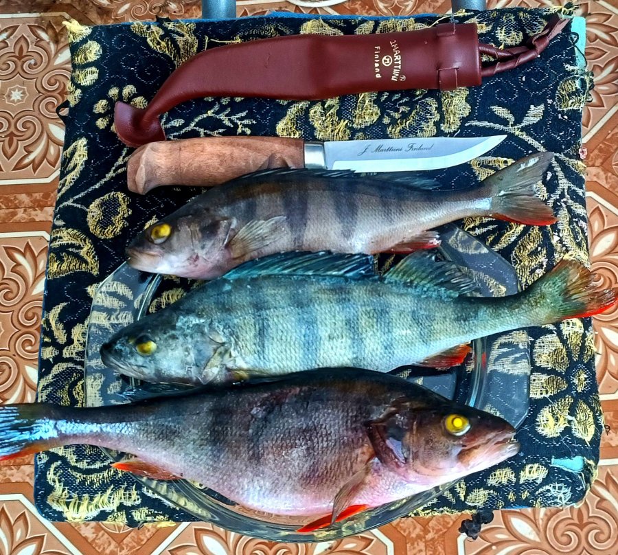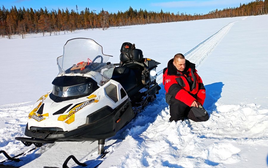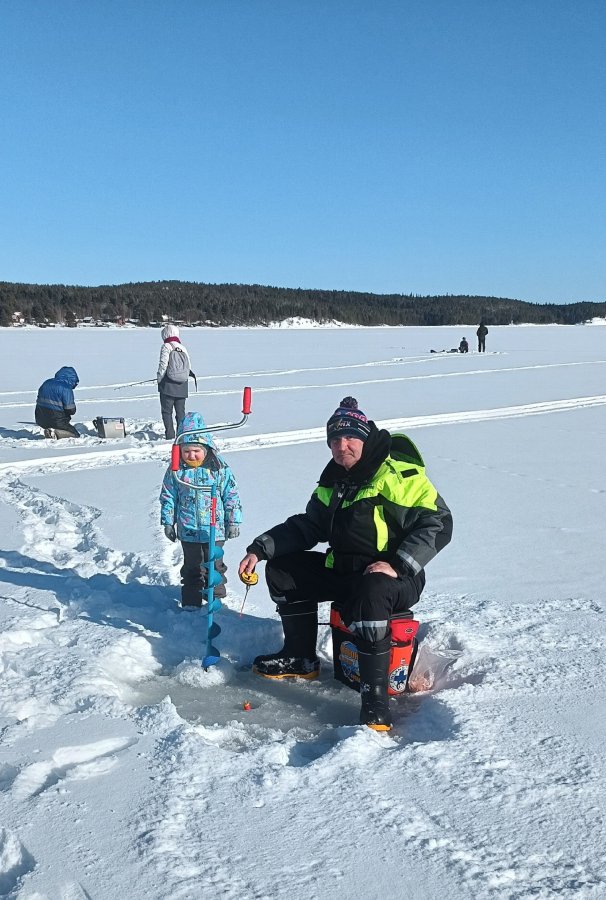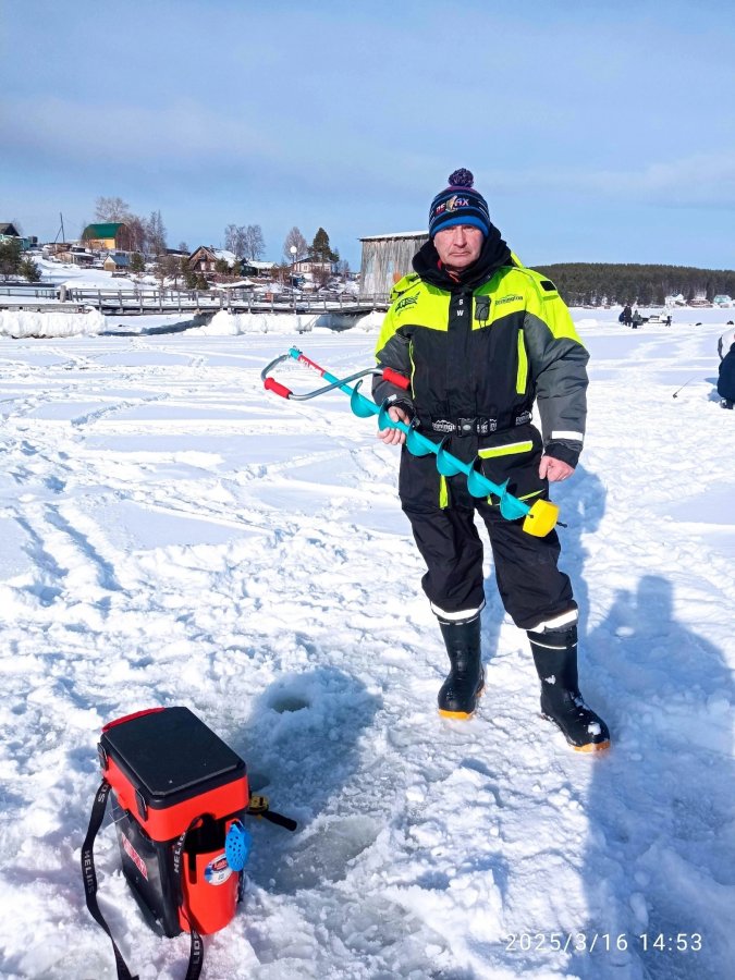 16-го соревнования, дальше изба на 3–4 дня. Ночью −35, жерлицы вырубало, добирались 60 км, топлива 120 л. Окунь крупный, чёрный. Росомаха на берегу крутилась.