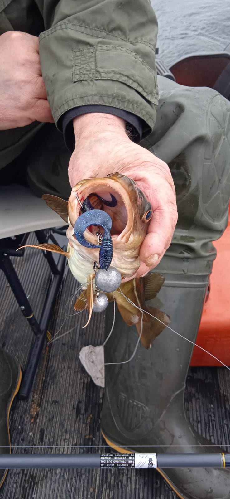 Ситуация понятна — заглотила оба. Ухожу на более длинный отвод и не тяну сразу, чтобы не рвать пасть. Пассатижи держу под рукой.