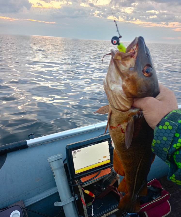 Сходил на одну ночь. Брала на виброхвост прямо у лодки, без подсадки креветки. В желудке трески колюшка и полурастворенная минога. По берегам палатки и машины повсеместно. Автохолодильник дома −20, в поле видел −7, чаще −3 — питание учту.