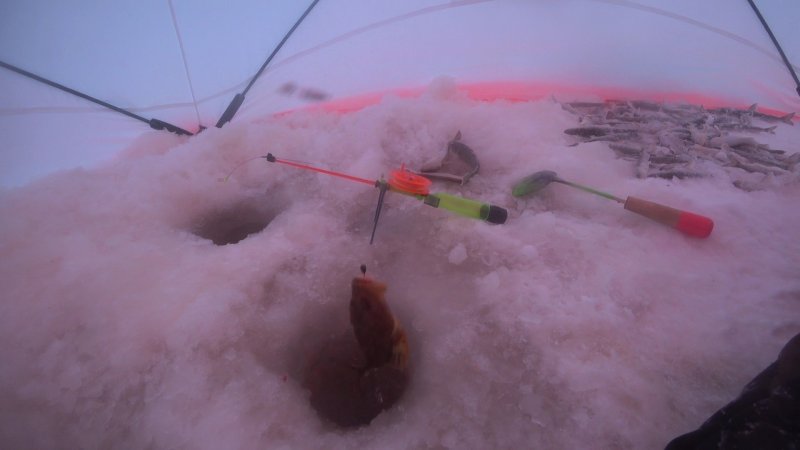 Выбрались с товарищем, морозит, а клев бодрый. Рявча бьёт, палатка скрипит. Белое море — наше всё.
