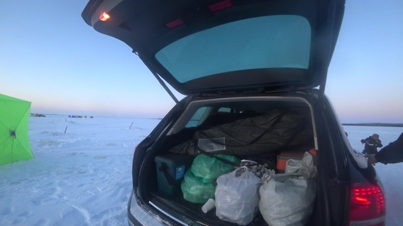 Мороз −30, едем в устье Кинжуги, лёд под колёсами стонет. Рыбы немного, зато солнце, чай и разговоры — праздник души.