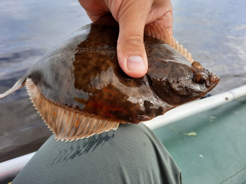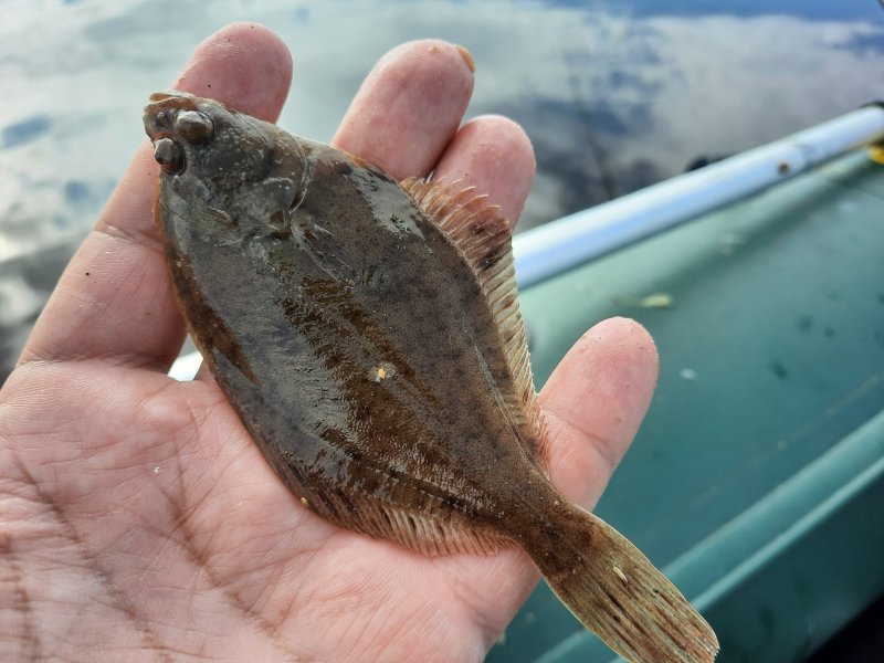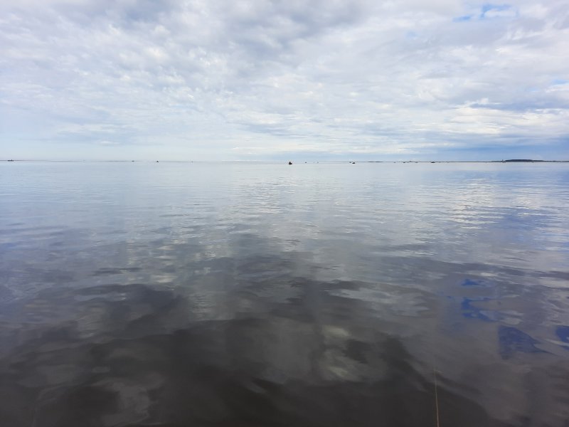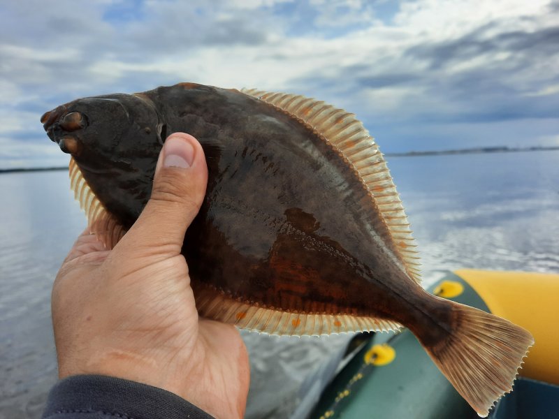 Пока солнце ещё греет, ловили на южном берегу. Камбала шла, креветка на крючке — королева наживок. Рыба, чай и ровный ветер — сказка.