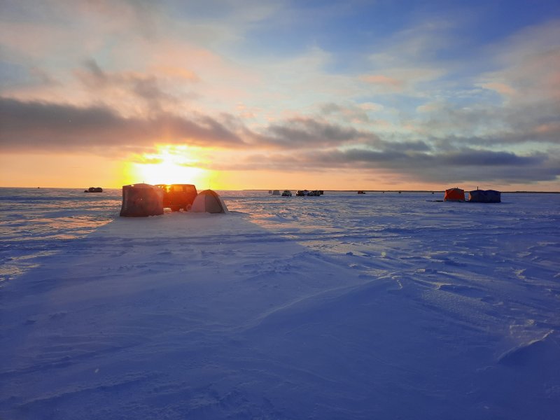 На Сухом море хитрая рыба нас переиграла. Никто ничего не поймал, но настроение праздничное. Крещение — не про улов, а про дух.)