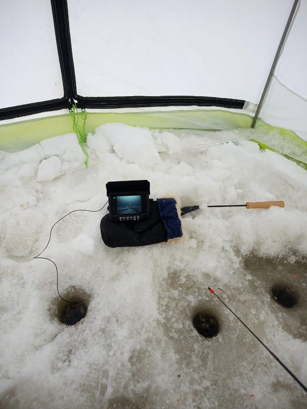 Половили у Северодвинска, пурга мешала, но десяток корюшки поймали. Рыбалка получилась короткой, но бодрой.