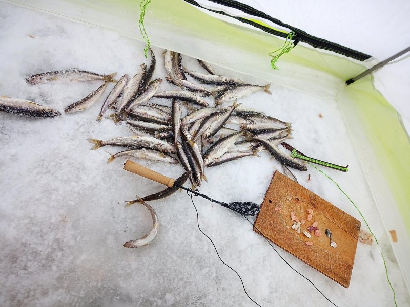 Ловил под Северодвинском, махалка сработала. Корюшка шла, настроение отличное. Белое море держит марку.