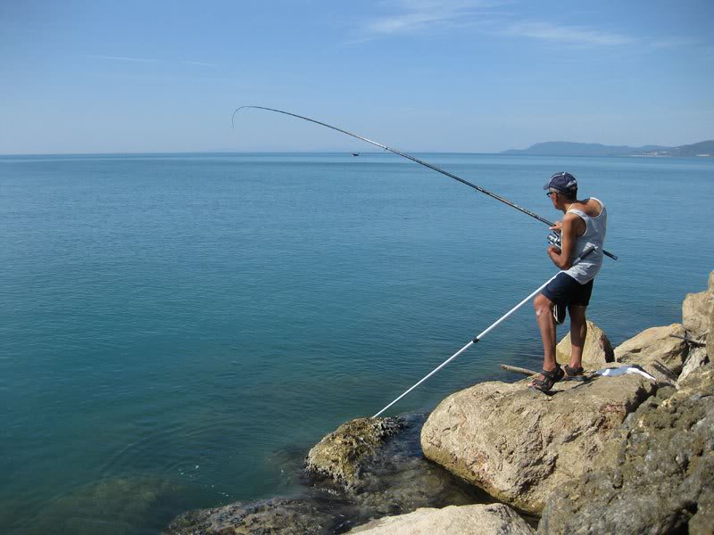 Тоскана, Марина ди Гроссето — рыбалка у молов, поплавки и спорная кефаль