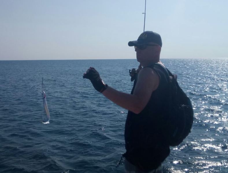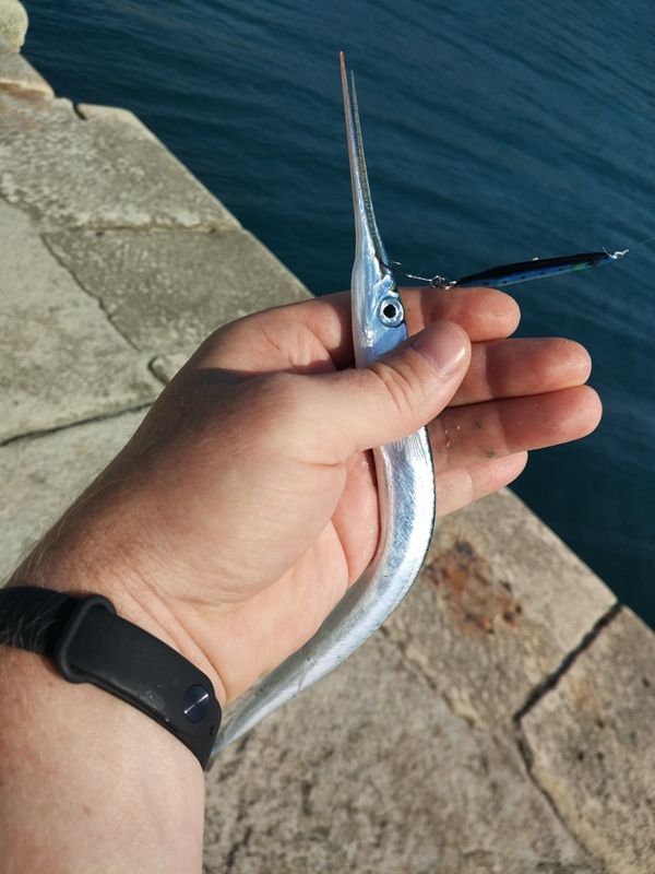 Микроджиг съела мелочь. Кальмар — ловится, но скучно. Купил пилькеры 10 г — добавил сибаса и саргана. Кошка схватила блесну, один крючок помог быстро освободить.