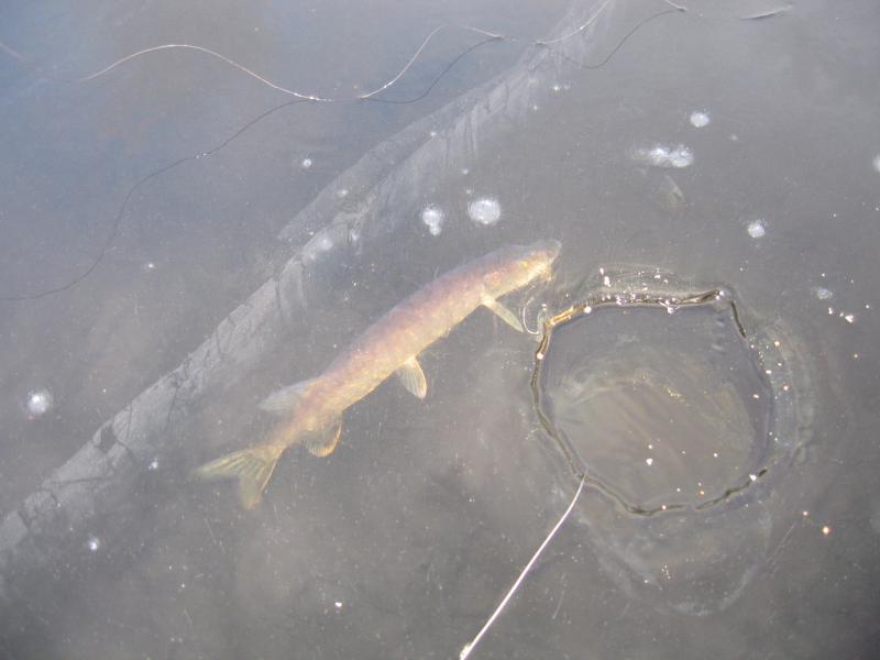 Живца ловить на месте. Опарыш розовый есть в супермаркетах. Жерлицы ставлю в 50–100 м от уреза, живца держу на 1.7–2 м от поверхности независимо от глубины. Смотрю из окна с биноклем, основные загары утром. Много не берите — отпускайте.