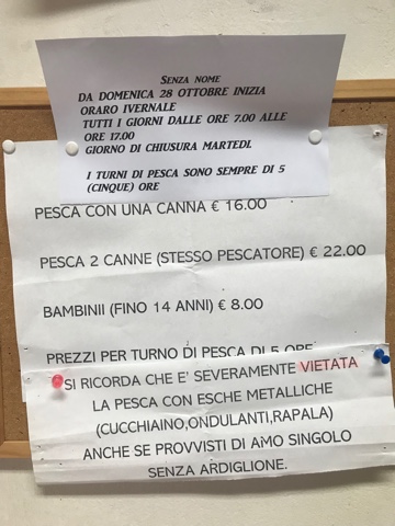 В Тоскане платники 14-20 евро за 5 часов, железо запрещено, спиннинг только резина или живец. Бомбардисты косили рыбу, попадались форели до 5 кг, голец, осетр, сом. На Биланчино видели щуку и басса у спортсменов. У отеля пруд: после первого бокала вина поймал мелкого басса, дальше всплески без поклевок. Маршрут удобен — Пиза летает Победа.