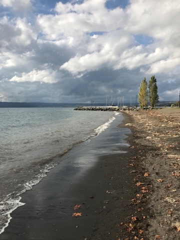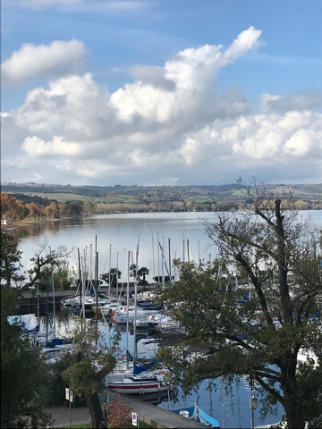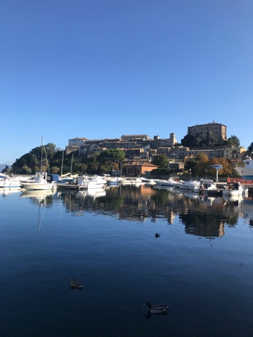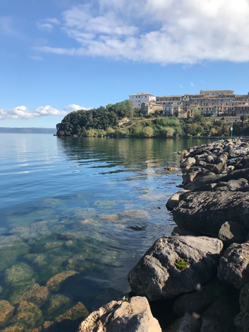 Больсена — чистая вода, трава под ногами и бассы под лодками. Ловил с камней, босиком почти. Италия, солнце, полная тишина.