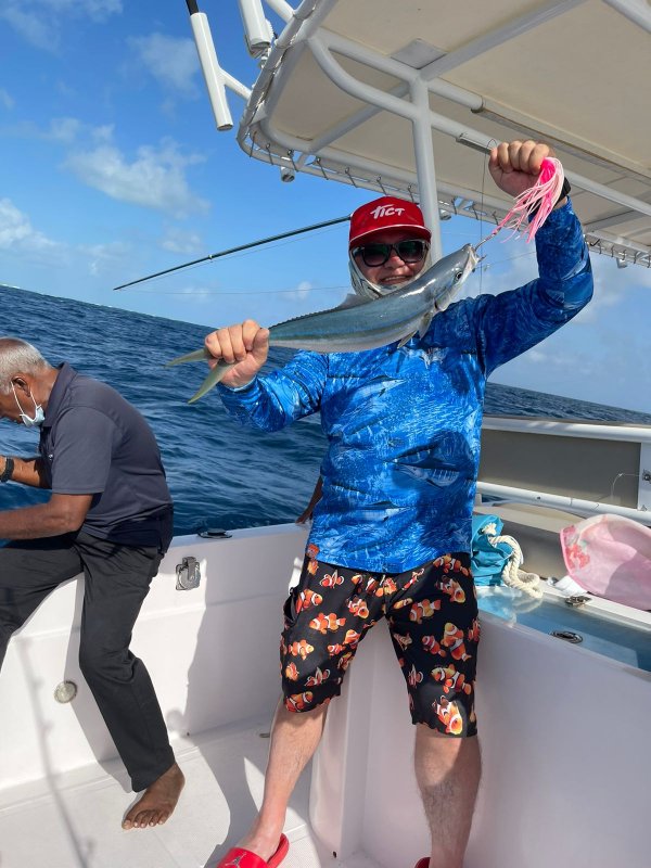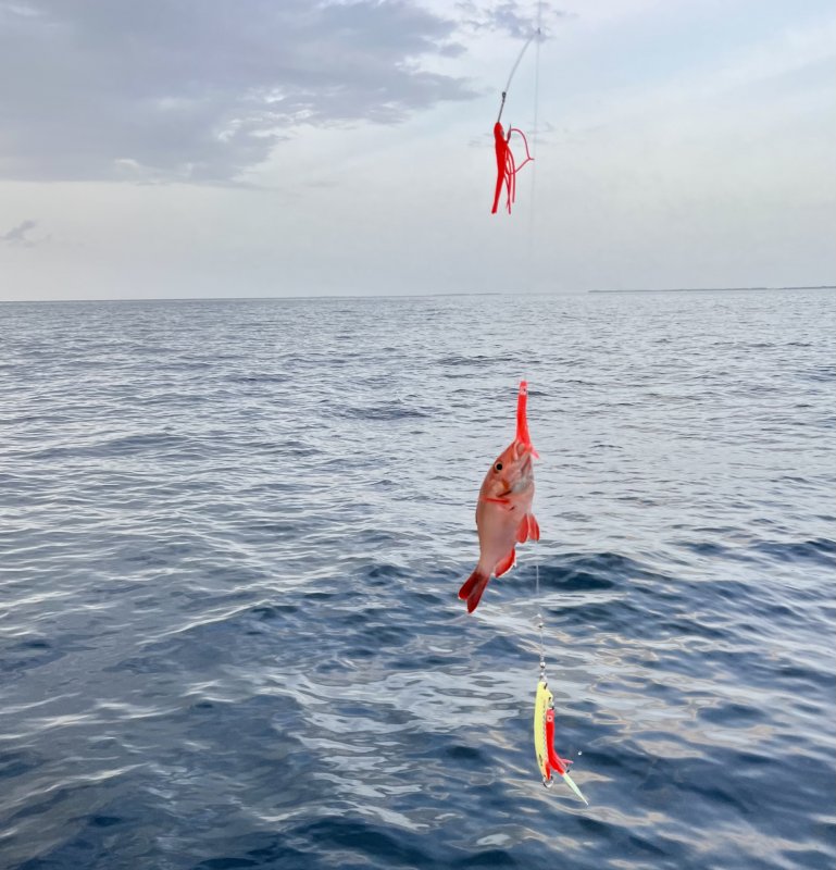 Отпуск в первых числах июня 2022. Не сезон - на чудо не рассчитывал. Вариантов два. 1) BIG GAME: троллинг или троллинг+джиг+поппинг, ценник конский. Капитаны чаще водят по рифам недалеко, без фанатизма - нет фишфайндера, снасти уставшие, приманки так себе. Договариваться по местам и маршруту бесполезно. Ищите попутчиков - делите чек. 2) Утро или вечер - донный джиг на кусковой рыбке с грузилом. Тут уже проще. Лайфхаки. - Если на троллинге взяли мелочь - не отпускайте, порежьте на куски и цепляйте на крючки, без наживки бывает глухо. - Пилкеры 160-200 гр, глубины 20-30 м, с удилищем и катушкой удобнее в разы, руками по леске не та история. - Нижние крючки на пилькерах снимайте, тройники тоже - это не Норвегия, рифы сжирают железо. - Морская рыбалка на Мальдивах в несезон капризная: у меня сработал только троллинг по тунцу, поппинг и джиг - ноль. Итог: два желтопёрых 8 и 10 кг, на вечерних с палкой вытаскивал стабильно, но на лодке многое решает кэп.