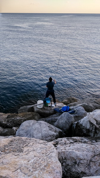 У устья много мелочи, под камнями видел горбыля. Днем уговорить кого-то удавалось раз в час. Вечером на западном волнорезе прикармливали сухарями — похоже, кефаль. В дождь на камни не полез — опыт скользких поверхностей уже был.