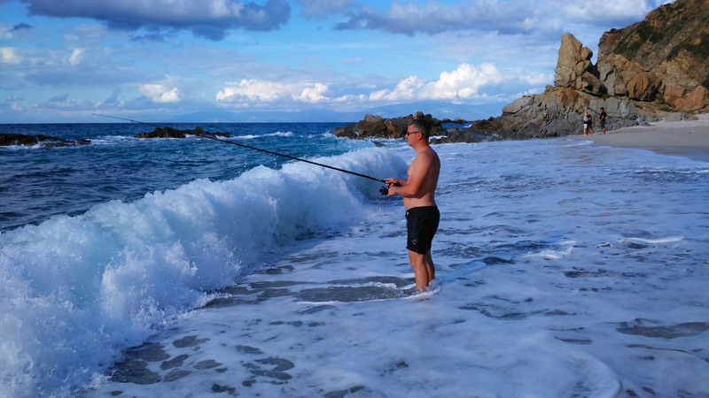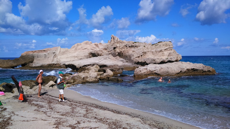 Вторая точка — каменистые пляжи, клев на каждом забросе. Медленно тонущая сбирулино решала. Червь морской и опарыш в бутерброд — взял сарганчика. Твистер провожали, но не атаковали. Местные блесны и воблеры — без результата при мне.