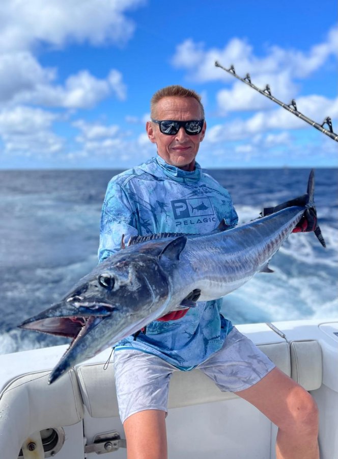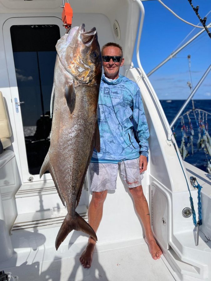 На днях поймали марлина 200–250 кг, четыре ваху, одиннадцать амберджеков. Морская рыбалка стабильная, океан даёт шанс каждый день.)