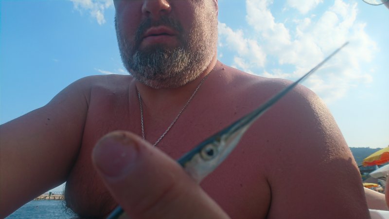 Вечером украдкой от охраны. Новая рыбка — незнакомая. Зато зелёнухи и серые ерши клюют стабильно. На ракушечье мясо лучше всего, крепко держится, с крючка не сбивается. В тишине слышно только плеск и шорох волн.)