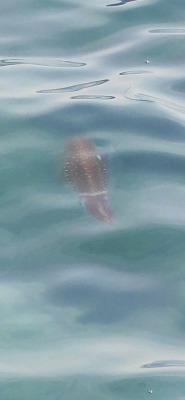 Сегодня опять на утренней рыбалке — всё клюёт, но одно и то же. Нашёл точку, где поклёвки на каждом забросе. А те «пятнистые рыбы» оказались каракатицами — подплывают близко, но не берут. Завтра уезжаю, попробую напоследок поймать что-то новое. Эх, жаль уезжать.)