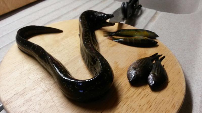 Ловил в море с берега. Мелкие лещи, бычки, даже детёныш мурены попался и плетню перегрыз. Поплавок и донка работали. Весело, хоть и без трофеев.