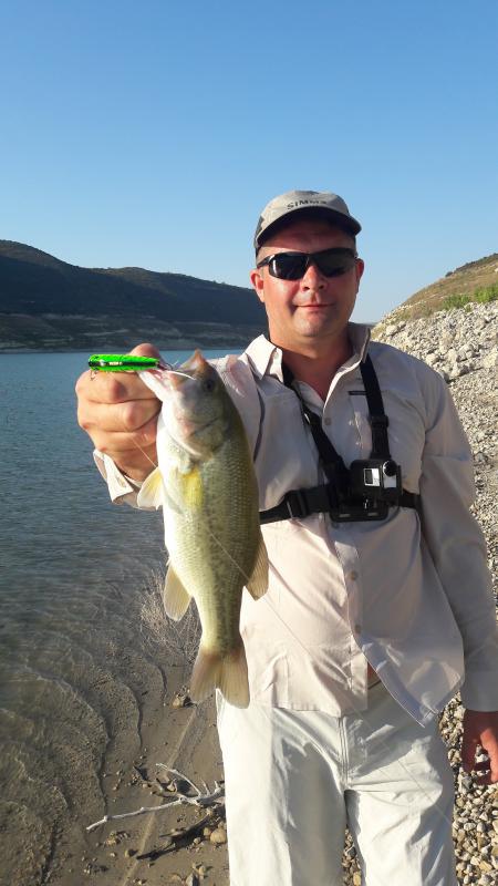 Были с Олегом утром. Две поклёвки, два басса. 100 % реализация. Поверхностные приманки работают, но попасть трудно. Басс бодрый!