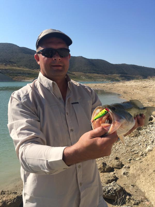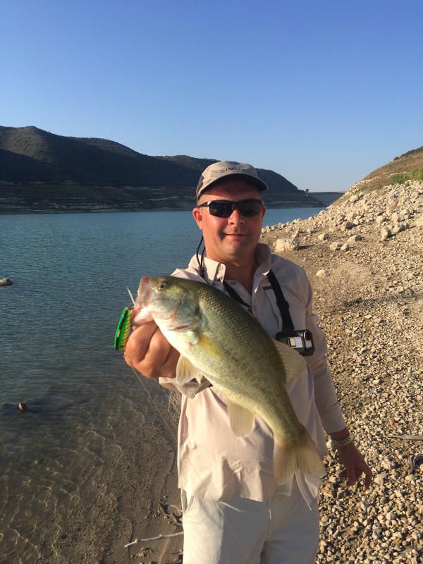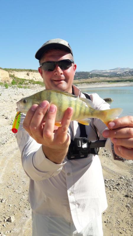 Первый раз на Кипре и сразу к Вадиму. Рыбалка трудовая, жара, вода тёплая. Поппер рулит, резина молчит. У Вадима сход трофейного басса. Рыба сильная, свечи не хуже щучьих. Понял — без гида тяжело.