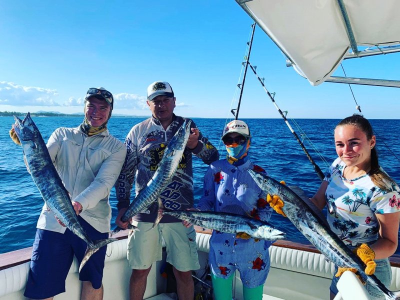 Юра отговаривал, штиль, клев в ветер, предлагал перенести, но поехали на ДР и не зря. Мы одни взяли рыбу — 4 ваху, подход у команды профессиональный и человеческий. В зоне отелей на Баваро береговая почти ни о чём, глубины мелкие, рассчитывать особо не на что, разве что в мангровые лезть за цихлидами. В 100 км есть варианты, но по безопасности так себе. Морская рыбалка в тех местах — это в первую очередь троллинг.