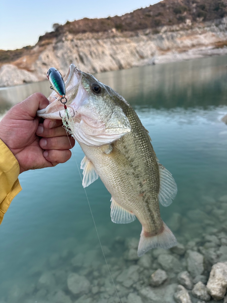 Смотрел вниз с дамбы — правый угол ожил. Басса взял на поппер, грамм 700. Утренняя рыбалка короткая, но живая. :)