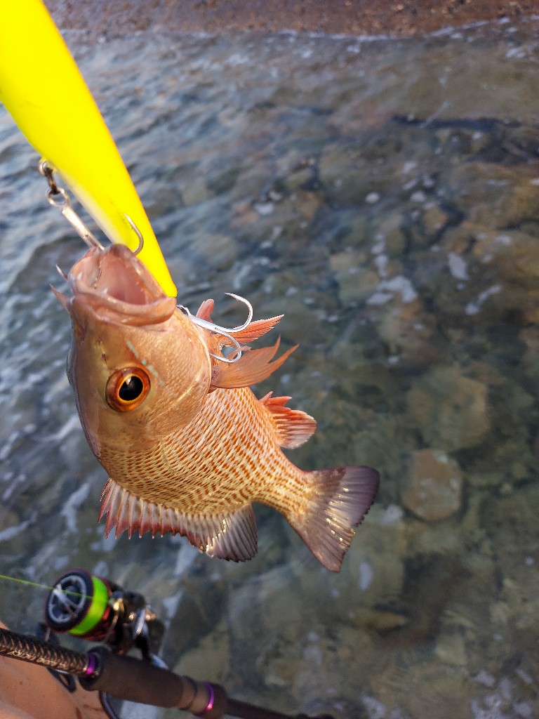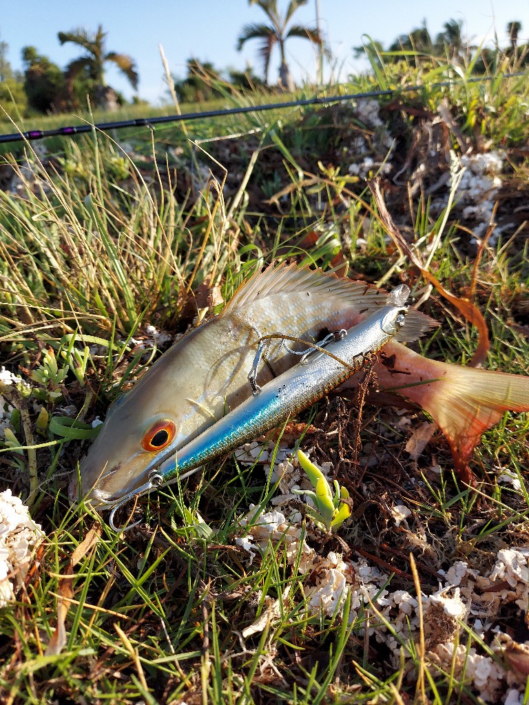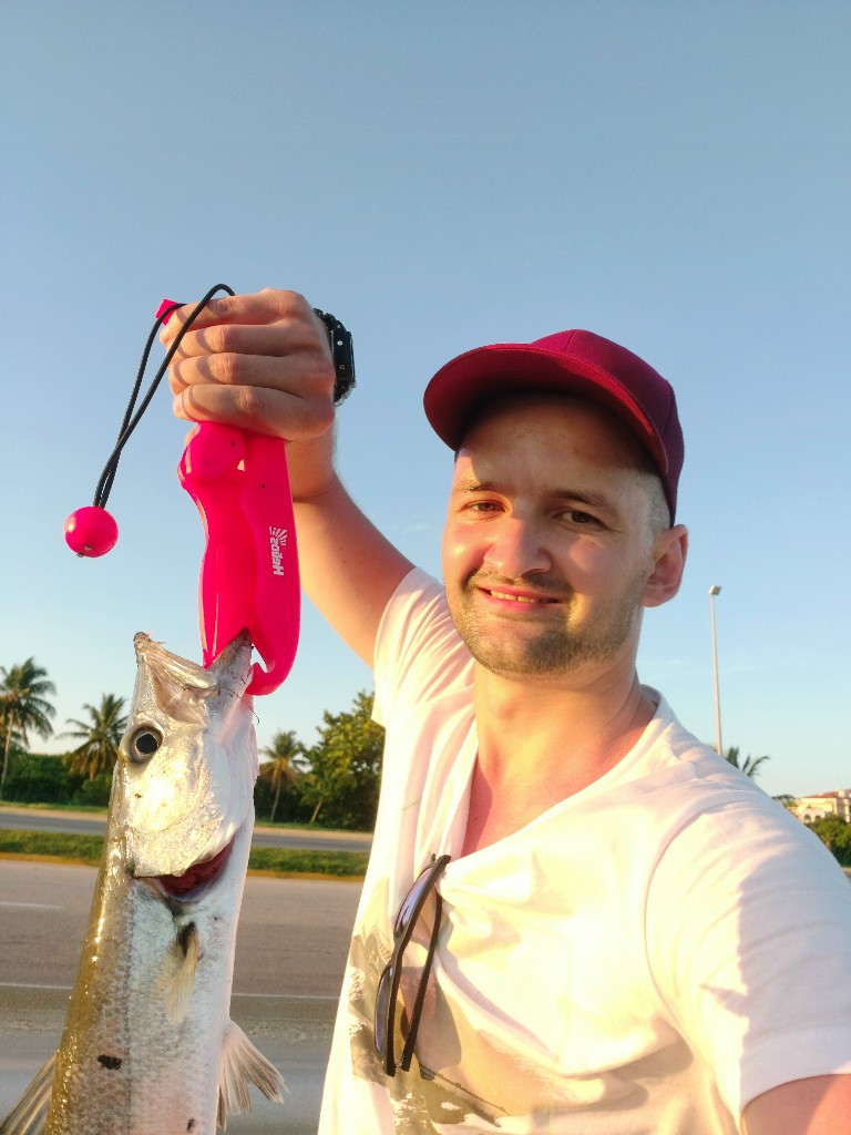 Ловил с 6:20 до 9:00. Две бары и два снеппера, все мелкие, но активные. Утренний бриз, солёная пыль на губах — день удался. :)