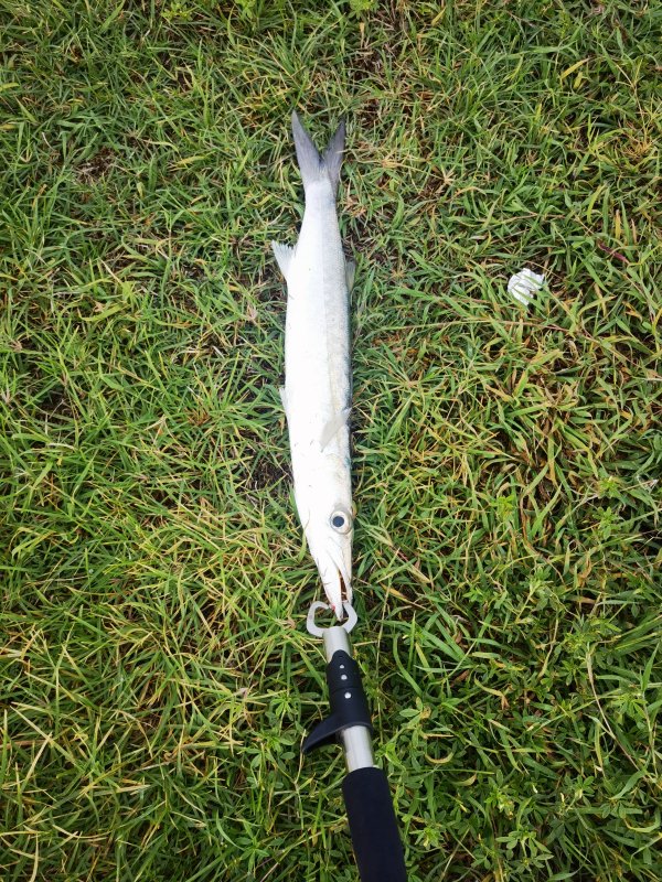 Сломал гайку катушки, починил из двух спинов, назвал монстром Kosadaka–Okuma. Вечером гроза, потом поклёвка барракуды — мелкая, но счастья море. Утром снеппер под два кила, отдал в бар. Вечером снова пойду, пока не улетаю. :)