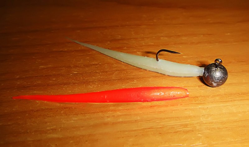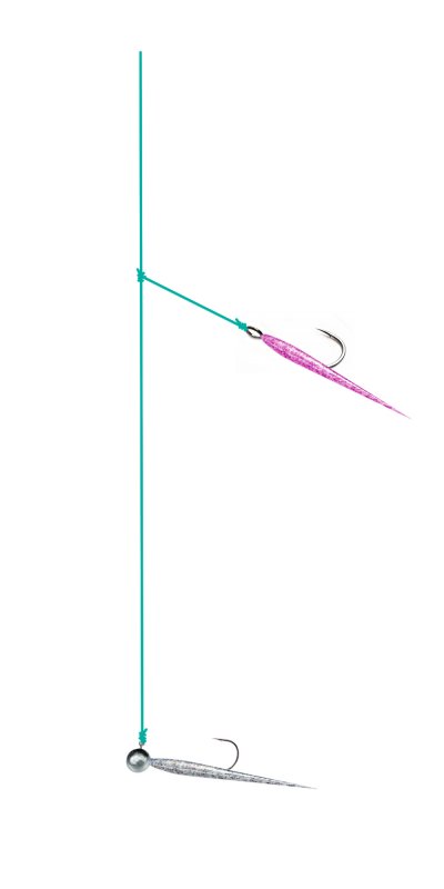 Пробовал вариант оснастки с двумя приманками разного цвета. Джигголовка грамма два, поводки короткие. При ритмичных подёргиваниях вверх игра получается как у живых мальков. Иногда на светонакопитель, иногда на оранжевую УФ — ставрида выбирает сама. Забавно наблюдать, как клюёт то на нижнюю, то на верхнюю. :)