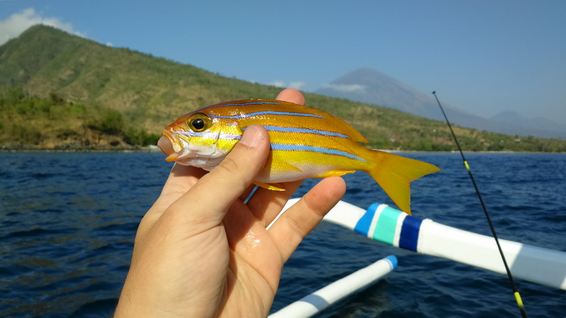 Из Убуда в Амед — вдоль дороги торговцы макрелью. В отеле договорился с Jil за 250 тыс. рупий, пожарить улов за 100. В 5 утра все лодки на воде, тянут лески с красными нитками. Я пытался воблеры, он смеялся — не ловят тут так. Ничего не поймали, креветки с кухни выручили, пару мальков достал. За рыбу платить не стал.