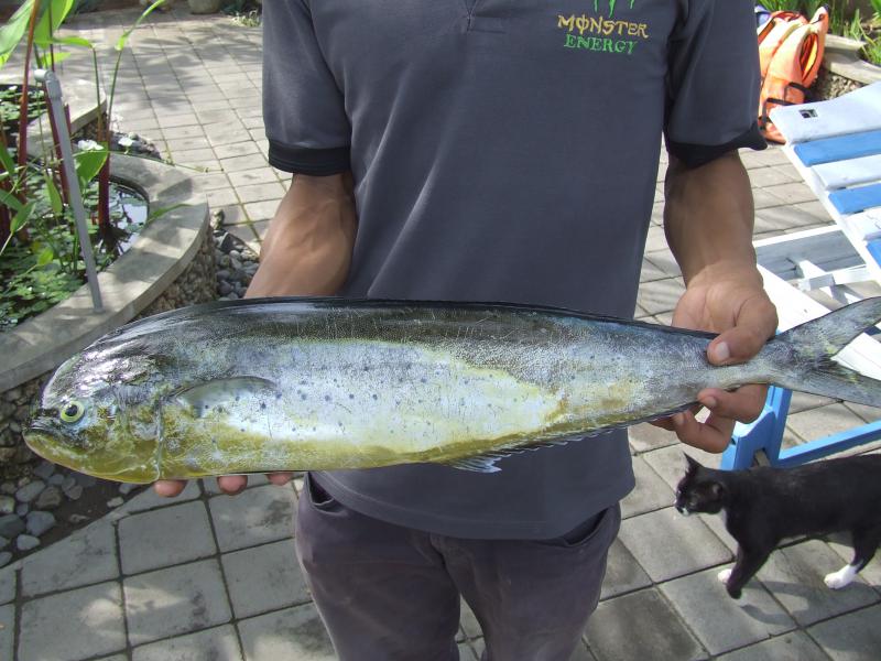 Отдыхали с женой в октябре 2016, север Бали, Ловина бич. В офшоре троллинг на кальмара, кругами, шнур капрон 1,5 мм. Поймали махи-махи, красивая, бойкая. У берега местные ловят снаппера и групера на куски рыбы. После 15:00 клюёт стабильно. Место интересное, глубина сразу у берега.