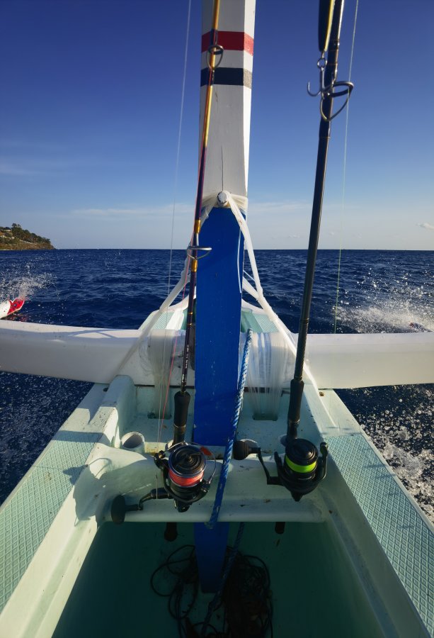 С рассветом барракуда на поппер у кэпа, и всё. На джиг — тишина. Хотели пройтись троллингом, но меня укачало. Одну таблетку принял, зря. Глубина до сотни метров, вода теплая, штиль. Завтра другое место, упор на джиг. Пилькеры нужны 400–500 г. Океан идеален, в Сануре бы так.