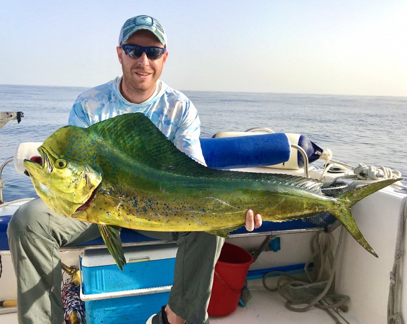 День вышел экзотический: поймали махов, подержали тунца, видели парусника, который преследовал минноу. После выхода шеф приготовил улов — со стола увели с трудом.