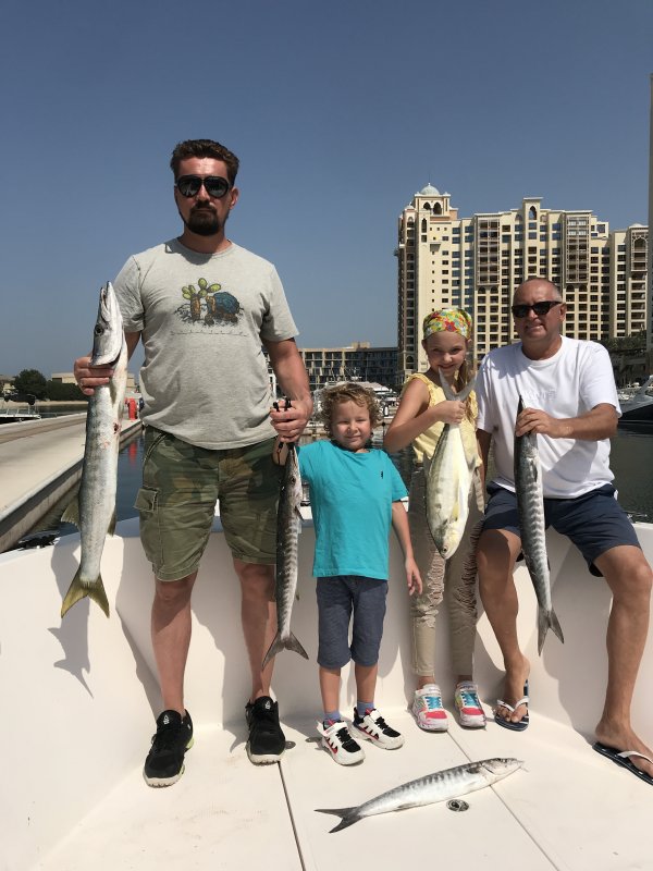 Семья из Москвы, цель простая: чтобы дети поймали крупную рыбу. По чайке на кастинг два Квин Фиша, активность упала — проверили точку по барракуде и не прогадали. Каждый взял свою рыбу, мечта закрыта.