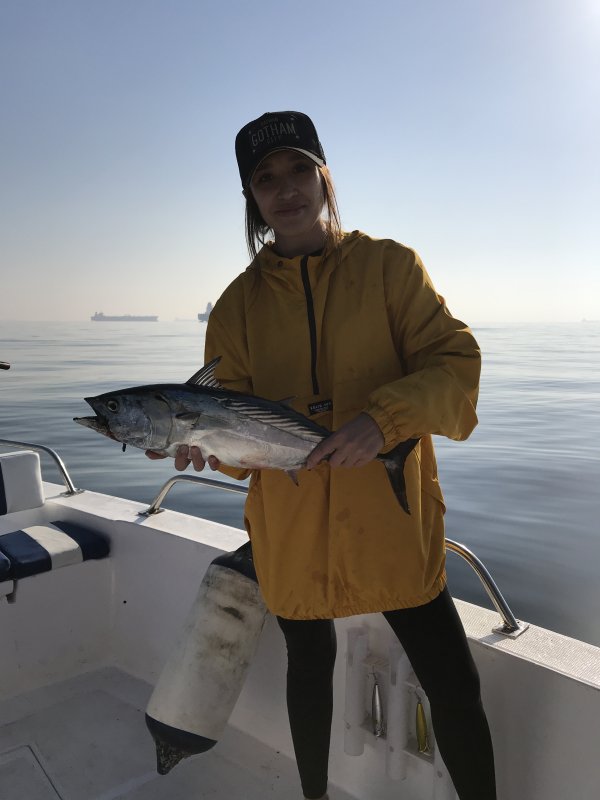 Ребята из Челябинска и Белоруссии хотели «подержать большую». Первые три точки молчали, на четвёртой взяли два махи. Когда солнце поднялось, тунцы вышли на малька и началась гонка по котлам. Наловились вдоволь, рыбу приготовили в марине.
