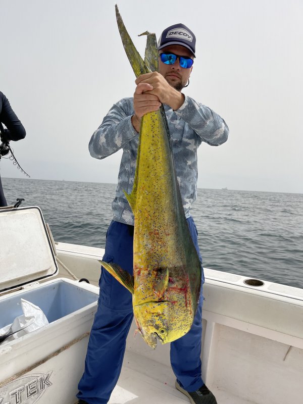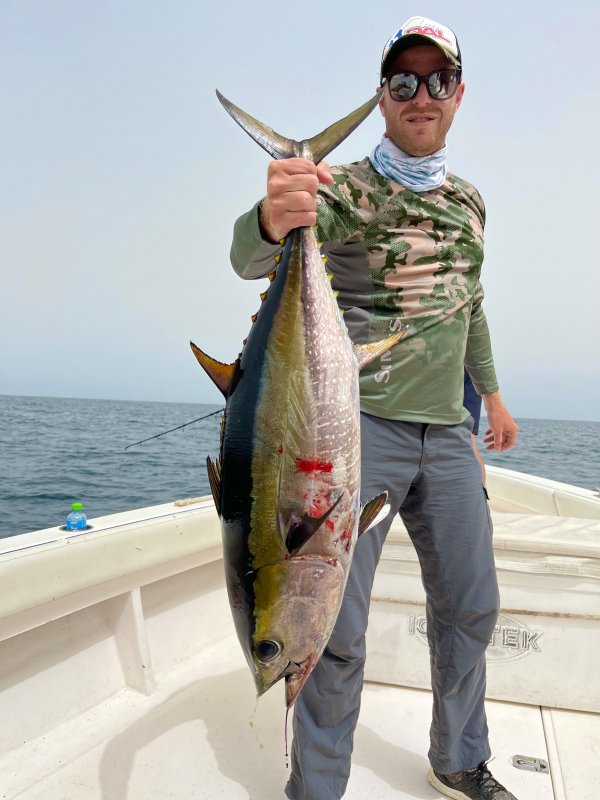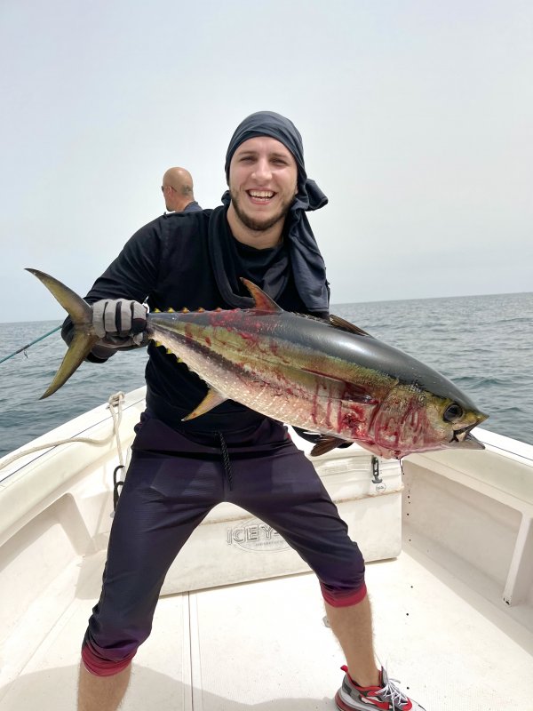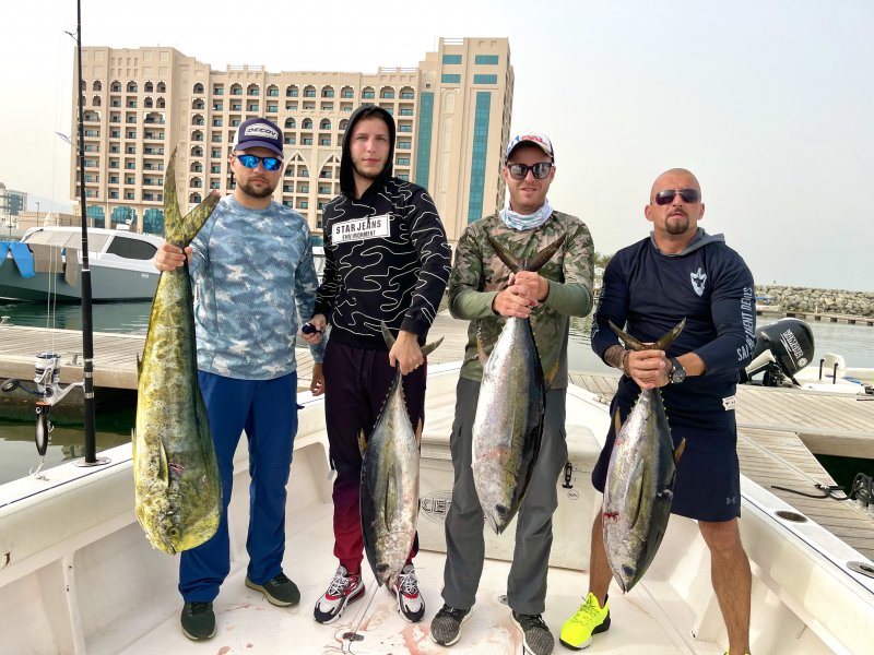Ден из Сербии и Саня из Челябинска. Ушли далеко, видели как соседние лодки поднимают больших тунцов, у нас серия холостых преследований. Сменили план на «синицу в руках», чтобы уйти не в ноль. В следующий раз будем строже к дистанциям и подаче.