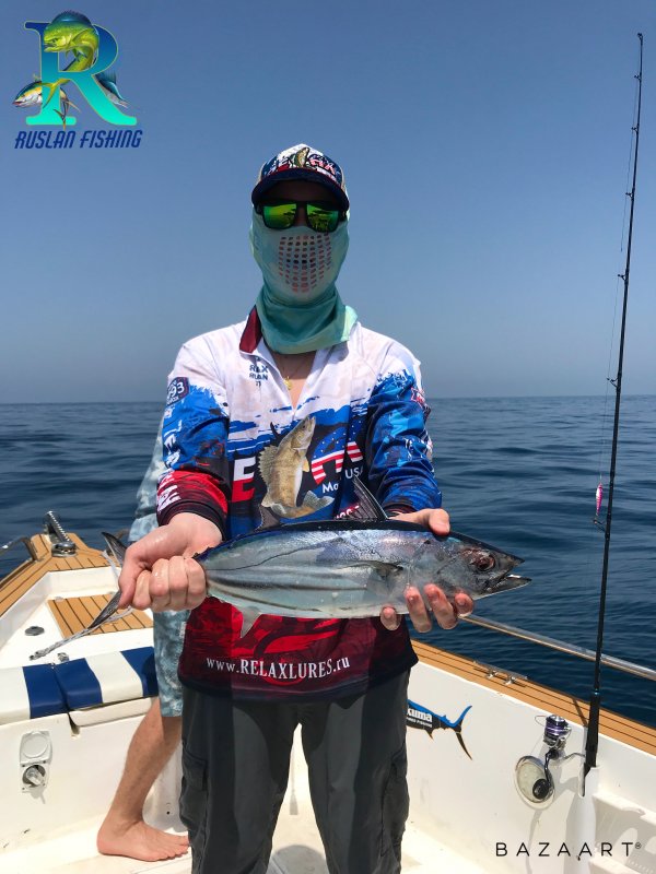 На 30-й км мотор выдал ошибку — вернулся, сменил лодку. На тунце сначала только мелочь, потом подсмотрел у оманцев технологию разбрасывания живца. Купил сотню, раздаю — выходит рыба, но берёт рембо-раннер. Остался один — бросаю и вяжусь с трофеем. Так и закрыл день.