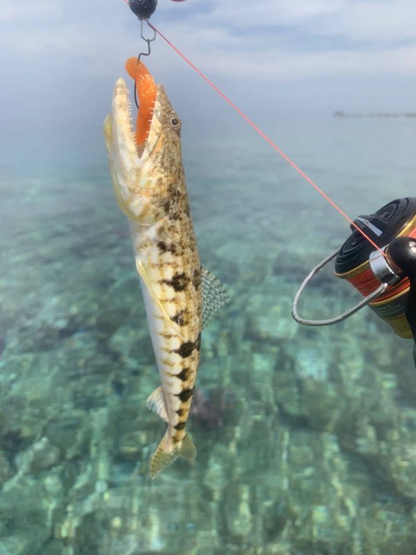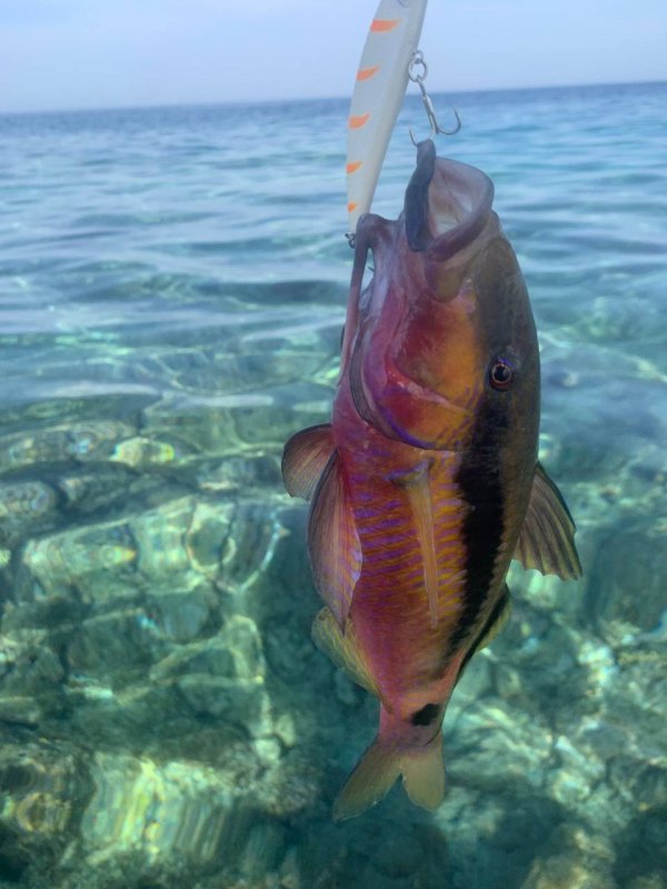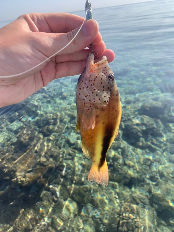 Группера всё-таки поймал, правда мелкого, несколько штук. Попалась красная рыбка с усиками под носом, вроде из барабулевых, и зубастик. Разведка удалась, понимаю теперь, какие снасти везти. И памятка - обычные кораллоступы для рыбалки не годятся, нужны плотные ботинки аквалангиста, иначе ноги в кровь.
