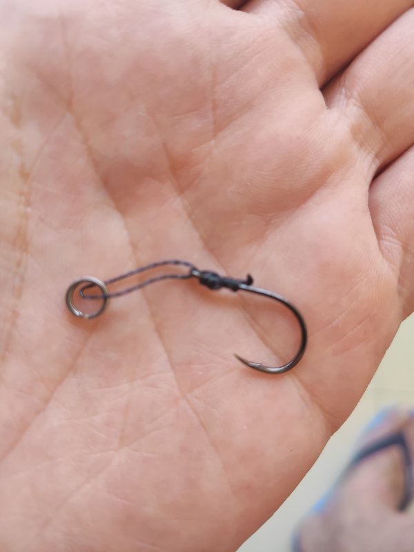 Обмоточная нитка около 0.5, узел промазан суперклеем. Держит крепко, но не «задубеет» ли на солёной воде со временем?