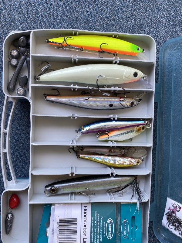 Разложил коробку: попперы, минноу, пилькеры. С чего начинать по утру и чем добирать днём? Склоняюсь к пилькеру под ветер, потом воблер. Морская рыбалка тут часто про железо.