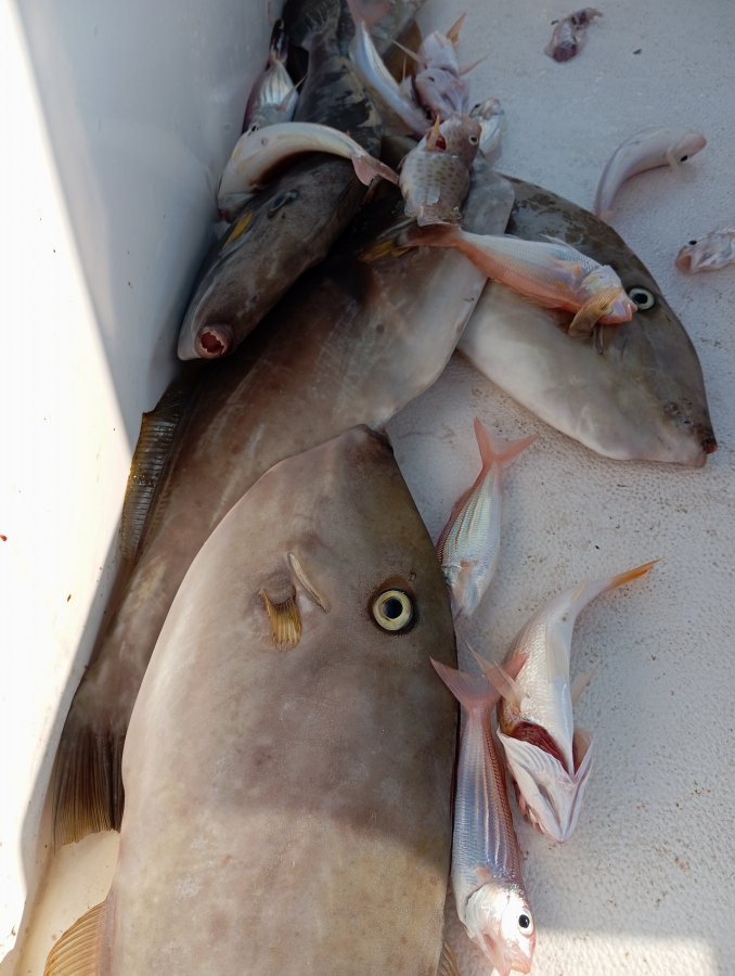 Встали недалеко от порта, привязались к бую, со дна на порезанную кильку и кольца кальмара шла «барабулька». На ферме у садков поймал рыбу, которую местные называют «камбала». Партнёр бросал воблер естественного цвета — у кинга были выходы, но разворачивал у борта. Одна поклёвка на пилькер закончилась обрывом.